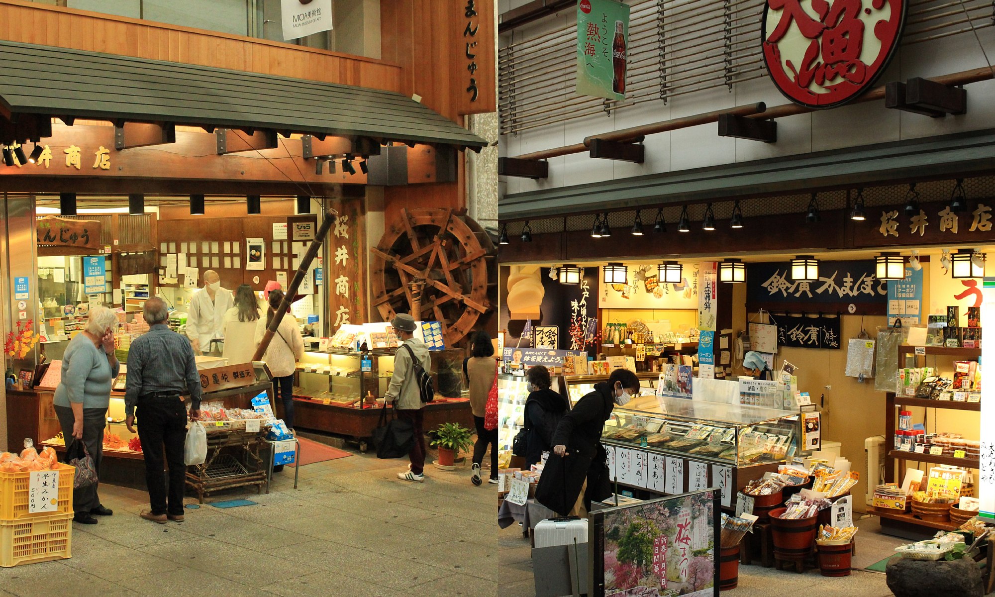 おすすめはうす塩天日干しあじの干物、鈴廣の「あげかま」「焼きぼこ」。その他海産物、わさび漬け等もご用意してお待ちしております。